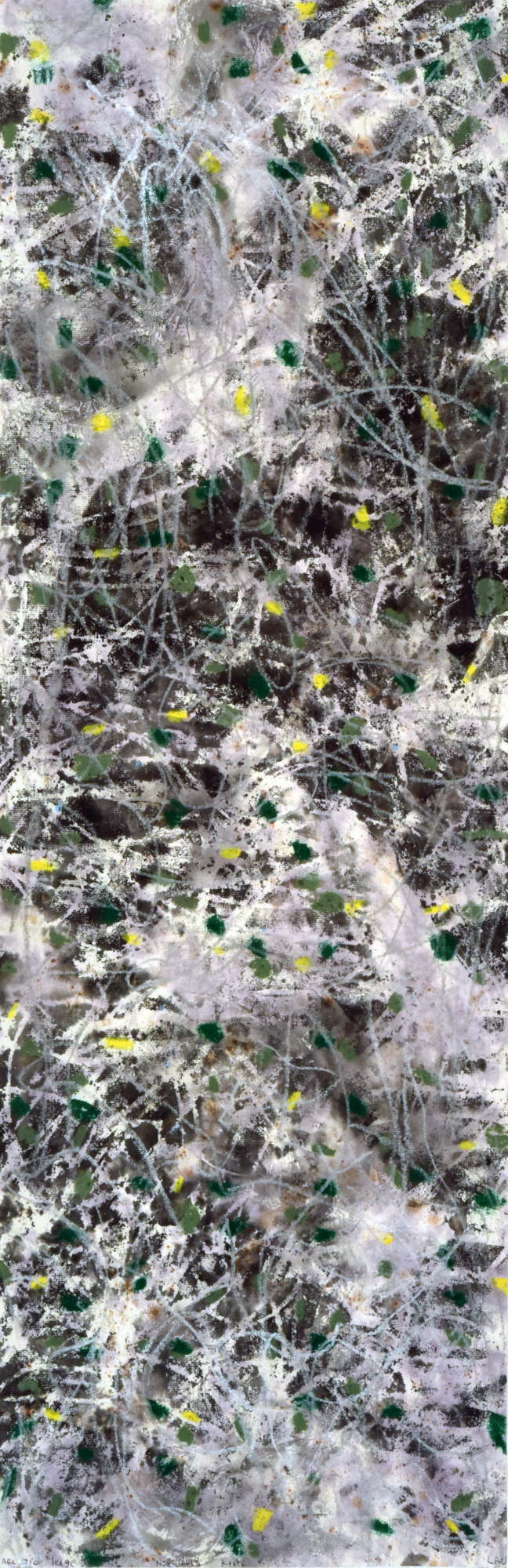 “trapped within my garden of longing (in memory of peach blossom spring)” is entirely different in stroke, texture and color.