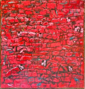 This pinting titled Red Wall Two Ducks is a joke, as the two ducks do not appear as far as I can tell. When I asked the gallery ownere about them, he said they were behind the wall!