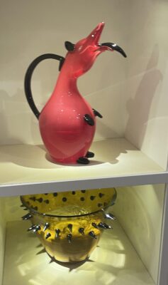 In niches in the wall outside the gallery blown glass vessels make reference to  various specific animals and activities with the collective title: