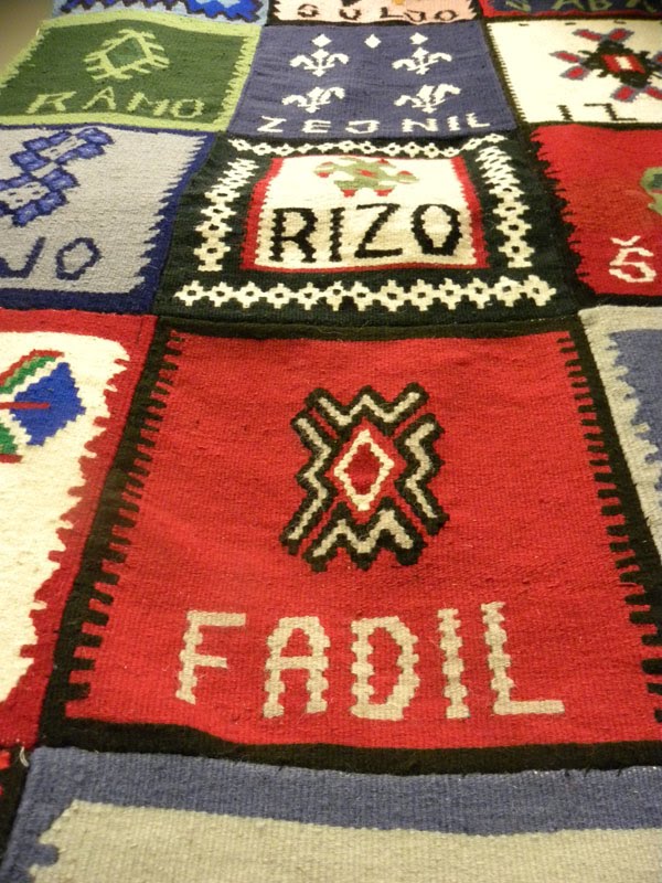 But then there is the Srebenica Quilt made by the widows, sisters, daughters of survivors of that terrible massacre. Each square is an homage to a lost loved one. Each one is actually woven, it is not a quilt, it is done in the flat weave kilim style, a heritage of the Ottoman Empire in this area. It is done by a group of brave, activist women who are extraodinary survivors, who are claiming a burial ground for their loved ones, who are reburying them, who are organizing to declare that they are going forward. This is the message of woman. I wish there were a play about that.